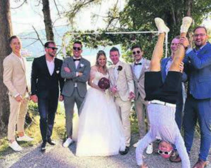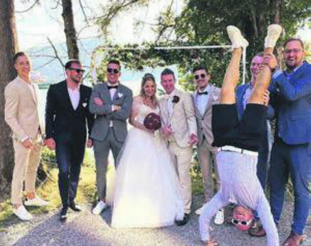 Schon der Junggesellenabschied war eine Nummer. Gleich mehrere Tage war die Truppe auf Mallorca und erlebte viele Geschichten, die an dieser Stelle natürlich nicht erzählt werden. Am letzten Wochenende stieg dann die riesige Hochzeitsfeier in Vitznau am Vierwaldstättersee. FC-Muri-Präsident Michael Stadelmann heiratete seine langjährige Freundin Sabrina. Ein Song der «Stubete Gäng» wurde extra auf das Brautpaar abgeändert (und vorgesungen), ein grosses Feuerwerk und eine richtige Traumhochzeit war es. Mit dabei natürlich auch einige (Ex-)Akteure des FC Muri (siehe Bild), die sichtlich ihren Spass hatten. Und was meint der frisch Vermählte dazu? «Es war einfach Weltklasse», sagt Michael Stadelmann. Wir gratulieren herzlich und wünschen alles Gute für die gemeinsame Zukunft.
