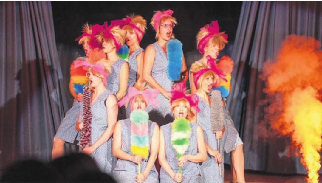 Nach der Pause ging es sportlich weiter: Die EGT starteten mit «Jump Dancers», einer synchronen Choreografie mit Minitramp-Elementen. Die VGT Jugend SSB begeisterte mit einem turbulenten «Chasperli-Theater», bei dem auch der Stufenbarren zum Einsatz kam. Die Männerriege folgte mit «The Show must go wrong». Als Sträusse verkleidet zeigten sie unter Schwarzlicht ein humorvolles Ballett voller Neon-Effekte. Die VGT Aktiven traten ein weiteres Mal auf – diesmal gemeinsam mit den Moderatorinnen Sophia und Rico, die ihr tänzerisches Talent unter Beweis stellten und grossen Applaus erhielten. Team Aerobic präsentierte «Molly meets Mary», eine tänzerische Show, die von Putzfrauen zu Tina-Turner-Doubles mit ikonischer Strubelfrisur wechselte.