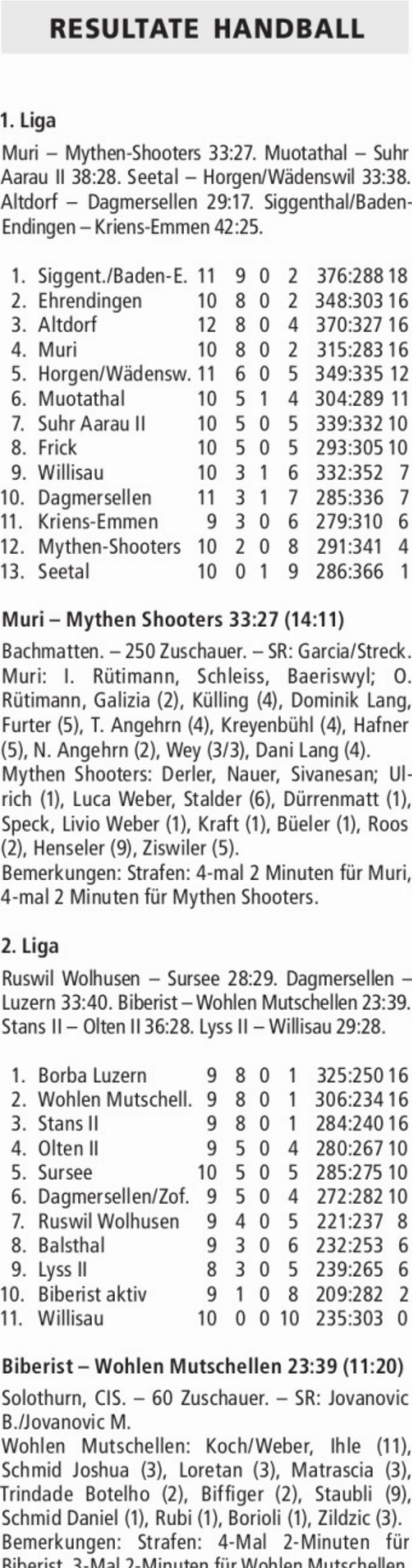 RESULTATE HANDBALL