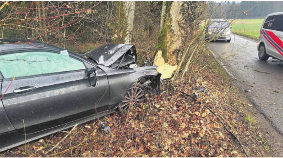 Der Selbstunfall ereignete sich am Dienstag, 10. Februar, kurz nach 15 Uhr auf der Wohlerstrasse bei Niederwil. Von Wohlen kommend war der Lenker eines Mercedes auf dieser schmalen Nebenstrecke in Richtung Fischbach-Göslikon unterwegs. Dabei verlor er die Kontrolle über den Wagen, kam links von der Fahrbahn ab und prallte heftig gegen einen Baum.