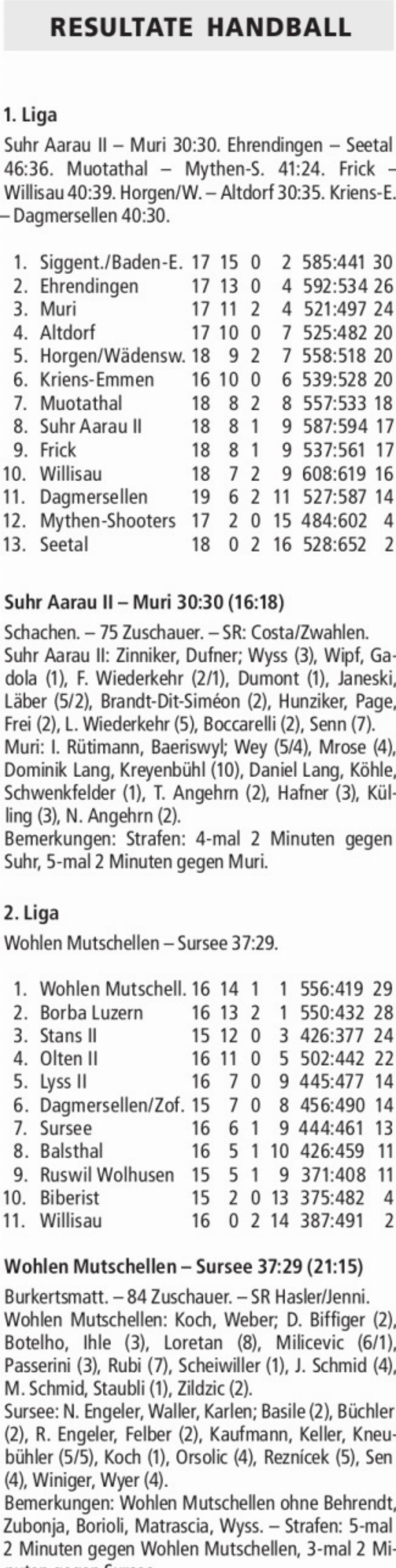 RESULTATE HANDBALL