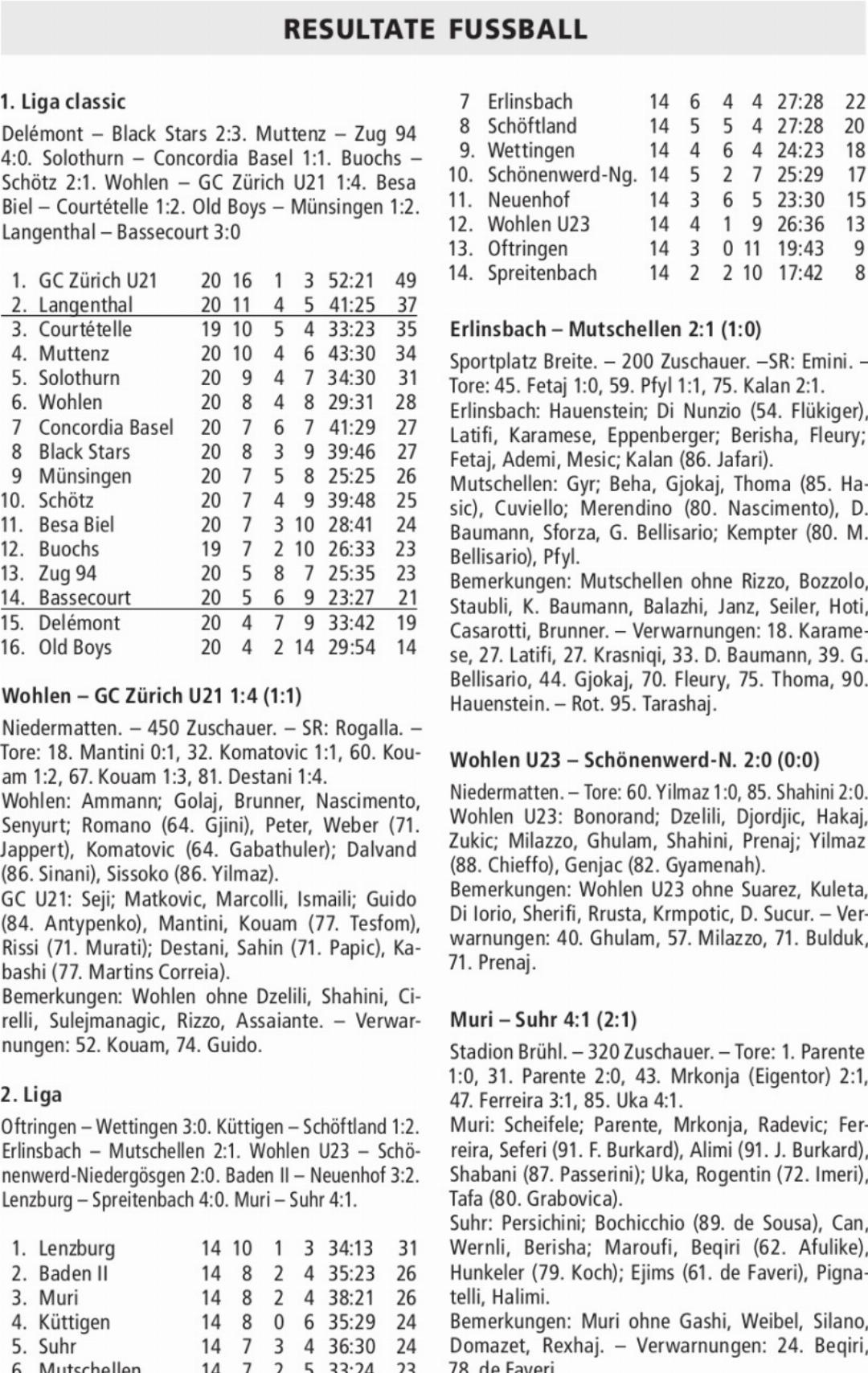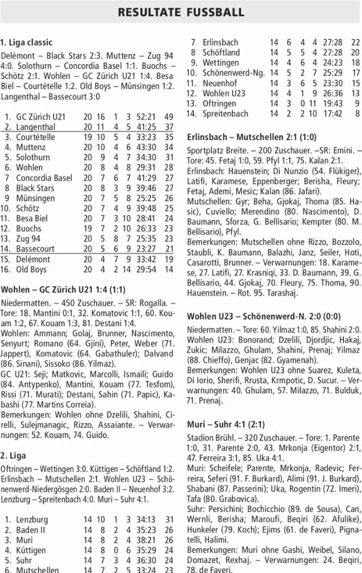 RESULTATE FUSSBALL