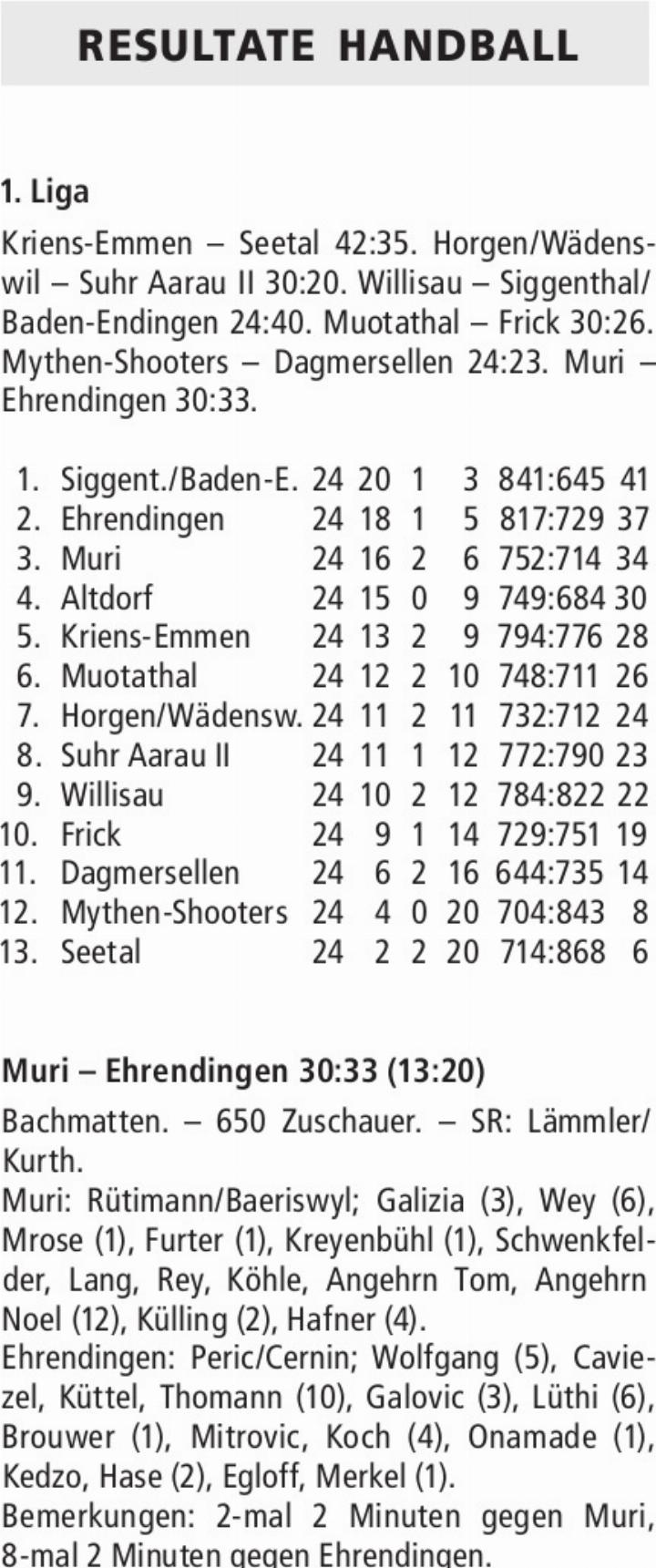 RESULTATE HANDBALL