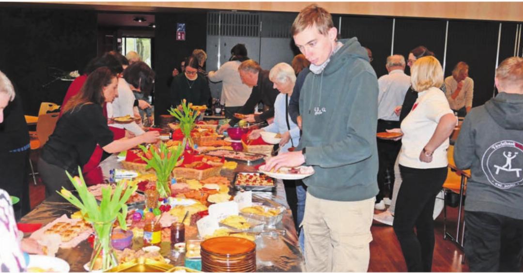 Im Anschluss an den Gottesdienst wurden die Gläubigen zur «Teilete» in den Chappelehof eingeladen. Zahlreiche Personen hatten dort auf Einladung der Pfarreileitung vorgängig Beiträge zu reichhaltigen Buffets, inklusive Desserts, abgegeben zur angekündigten Wiederbelebung der «Teilete», eines Höhepunkts der bald zu Ende gehenden Fastenzeit.