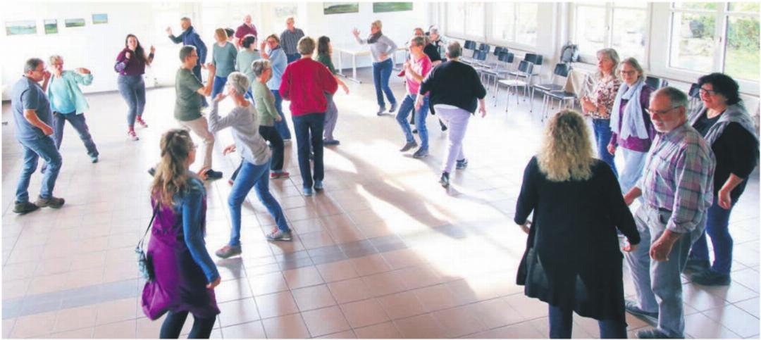 Bis plötzlich eine unbekannte Person im Raum stand: Katrin Sauter, Zürcher Vokalmusikerin, Performerin und Theaterschaffende. Von da an steppte der Bär. Im Nu brachte sie den Chor dazu, mit dem ganzen Körper zu «singen», erst in kurzen Schrittfolgen, jede Teilgruppe in einem anderen Rhythmus, dann mit dazu passenden Lauten. Die Gruppen lösten sich auf, und alle wirbelten einzeln durch den Raum, behielten aber ihre Schritte und ihren Sprechgesang bei. Nach einer kurzen Atempause wurde jedes Chormitglied zu einem Solo-Kurzauftritt aufgefordert, bestehend aus einer möglichst wilden Abfolge von Lauten und dazu passenden Ganzkörperbewegungen, die jeweils von den Umstehenden aufgenommen und fast bis zur Trance wiederholt wurden. Dank mehrerer Durchgänge wurden schliesslich rund 80 Laut- und Bewegungserfindungen zelebriert. Das war ein Donnern, Trillern, Juchzen, Blubbern, Gurgeln, ein Hüpfen, Stampfen, Schleichen, Fuchteln – Energie pur und ein Heidenspass für alle. Was für ein Gegensatz zum streng notendiktierten Chorgesang! Im weiteren Verlauf schaffte Katrin Sauter es sogar, mit behutsamer Lenkung aus dem Chaos eine Art klangliche Harmonie zu zaubern.