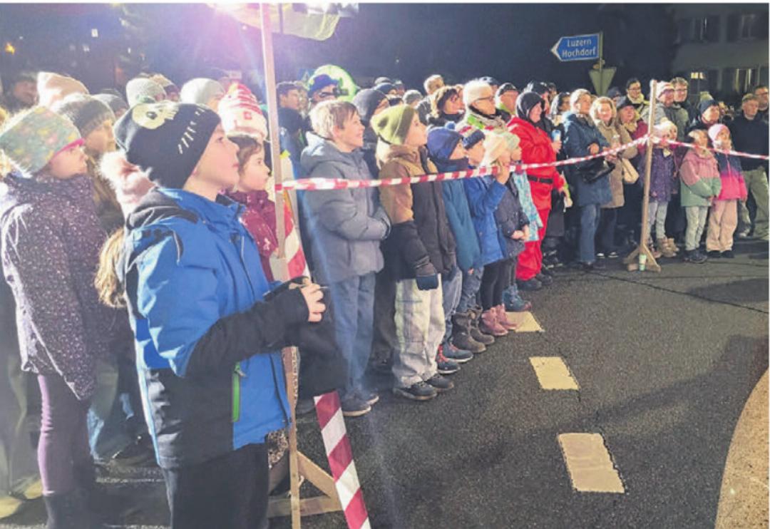 Exakt 50 Jahre später erklingt das «Tra-tra-trallala» nun also vor dem Güüggibueb-Brunnen. Die 76er haben ihren Fasnachtswagen als riesengrosses Chasperli-Theater gestaltet. Hier treten aber keine Handpuppen auf – nein, die Jahrgänger haben sich selbst als Puppen verkleidet. Und hier also begrüsst der Chasperli zum Ahösle die grosse Publikumsschar. Die besteht zum einen aus älteren Jahrgängen, die sehen wollen, was ihre Nachfolger auf die Beine stellen. Aus Delegationen aus den Nachbargemeinden. Aber auch aus ganz vielen Kindern. Ob sie die Figur mit der Zipfelmütze noch kennen?