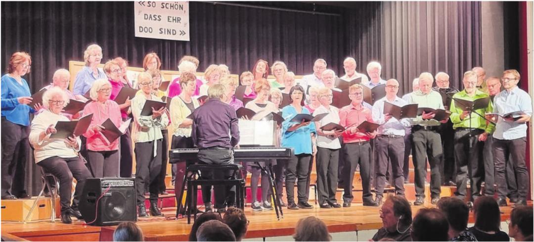 Der Mundartsong «Jede weiss, wos aneghört» vom bekannten Komponisten Hardy Hepp drückte aus, wie unterhaltsam und gefällig der Abend verlief. Immer wieder applaudierten die begeisterten Zuhörenden nach den Beiträgen, die ihnen dargeboten wurden. Wie schön der Chorklang ist, wird bei einem kleinen Missgeschick zwischen Dirigenten und Chor klar. Doch dies war eher ein Lob als eine Störung.