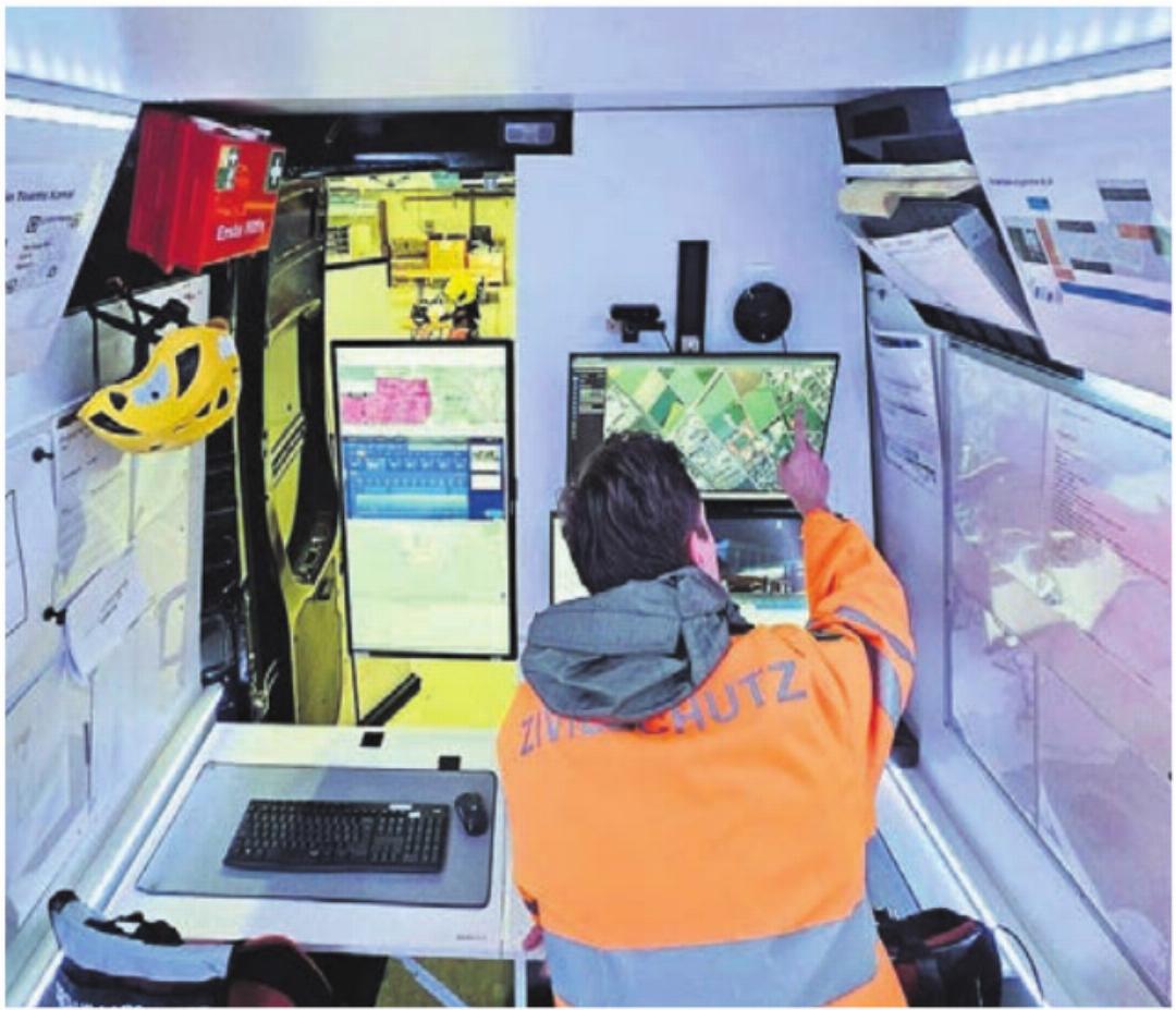 Sie staunt nicht schlecht, als sie das mobile Kommando-Fahrzeug der Zivilschutzorganisation Aargau Ost betritt. Haufenweise Bildschirme zieren die Wände des vom Zivilschutz speziell umgebauten Transportwagens. Dazu: grafische Abbildungen des Einzugsgebietes, Checklisten, Infowesten. Man sieht dieser jungen Frau an, dass sie dieses moderne Equipment und die digitalen Elemente nicht erwartet hätte. Sie, die einer der vielen jungen Menschen ist, die an diesem Oktobertag an einer Sicherheitsveranstaltung in Wohlen teilnehmen.