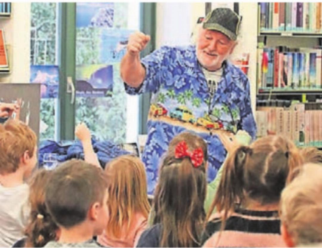 Als Jubiläumsgast für die jüngeren Bibliotheksbesucher gab sich Peach Weber die Ehre. Er entführte die rund 50 Kinder mit ihren Begleitpersonen in die Welt von Zwerg Stolperli. Er und seine zwei Brüder Schloofmützli und Alleswüsserli leben in einem hübschen Häuschen im Wald. Sie sind eigentlich glücklich und zufrieden, nur, Stolperli hat ein grosses Problem: Er stolpert immer wieder über alles, was sich anbietet. Trotz allem – Zwerg Stolperli steht immer wieder auf. Kleine wie auch grosse Besucherinnen und Besucher hatten mächtig Spass an Stolperlis Eskapaden und liessen sich von Peach Webers unverwechselbarer Art, Geschichten zu erzählen, in den Bann ziehen.