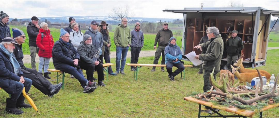 Ein Rothirsch zeigte sich auch im weiteren Verlauf des gemeinsamen Anlasses von Jägerschaft und Stiftung Reusstal in Rottenschwil nicht. Das wäre auch ein zu grosser Zufall gewesen. «Am ehesten findet man noch ihre Spuren», sagt Adrian Seiler, also den Kot – in Jägersprache: «Losung» – oder die Trittspuren im Schnee oder im weichen Untergrund, führt der Obmann der Sektion Bezirk Muri von Jagd Aargau und Jäger im Revier Bünzen-Rottenschwil weiter aus.