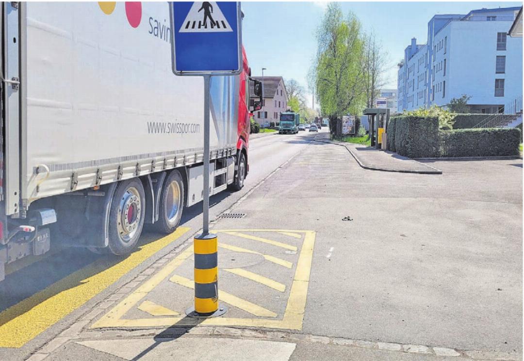 Die beiden Bushaltestellen befinden sich leicht versetzt vor und nach der Einmündung «Im Winkel». Angefahren wird sie sowohl vom Ortsbus und von der Buslinie 345 (Wohlen–Dottikon– Hägglingen). Die betreffende Stelle wird pro Tag von über 12 000 Fahrzeugen passiert. Die Fahrzeuge sollen auch weiterhin in Busbuchten halten und nicht auf der Strasse. Positiv: An beiden Seiten führt ein Gehweg zur Haltestelle. Und dazwischen liegt ein Fussgängerstreifen, sodass auch die Strassenseite sicher gewechselt werden kann. Die Haltestellen bleiben an ihrem jetzigen Ort, verschoben wird hingegen der Fussgängerstreifen, und zwar um 15 Meter Richtung Wohlen. An dieser Stelle muss – wegen der neuen Mittelinsel – auch die Strasse verbreitert werden.