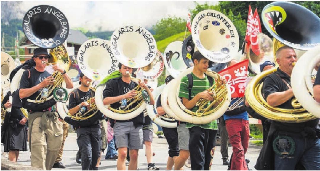 Für die Organisation zählen die Sädelgeischter auf sämtliche Vereinsmitglieder. «Wir sind sehr euphorisch», weiss Patrick Mairinger. Reichmuth erklärt, dass es während des Wanderns verschiedene Herausforderungen zu bewältigen gibt: «Einerseits wiegt ein Sousafon zwischen 9 und 20 Kilogramm und wirkt mit zunehmender Länge schwerer. Anderseits gibt es bei 300 bis 400 Teilnehmenden mit der Zeit beim Wandern eine ziemlich lange Schlange.» Das gemeinsame Spielen wird so nur schon dadurch schwierig, dass der Schall vom vordersten bis zum letzten Sousafonisten verzögert ankommt.» Das sei aber nicht schlimm. Schliesslich stehe bei diesem Anlass der Spass im Vordergrund. «Man muss auch nicht immer spielen, sondern darf beim Wandern auch mal quatschen», lacht er.