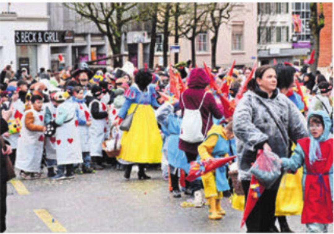 Die Kids lassen sich nicht beirren. «Hampflewiis» werden die Zuschauer mit dem bunten Konfetti beschossen, welches in Einkaufswagen, Kisten und Bollerwagen mitgeführt wird. Hie und da ein leichter Windstoss und die Schnitzel fliegen in die verdutzten Gesichter der Verteiler.